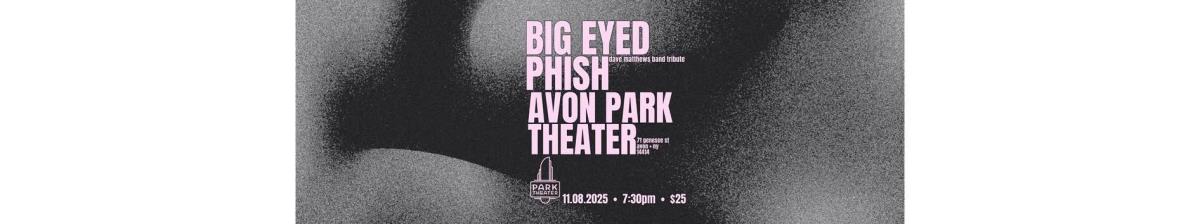 Big Eyes Phish: A dave Matthews Band/Phish tribute. A Dave Matthews Band/Phish tribute. Set a Reminder Enter your email address below to receive a reminder message. Email address Select the amount of Days before the event -- Select Days Before Event -- 1 Day 2 Days 3 Days 1 Week Captcha Validation Please complete the Captcha Submit Date and Time Saturday Nov 8, 2025 7:30 PM - 10:30 PM EST November 8 Location Avon Park theater Fees/Admission $25.00 in advance $30.00 at the door. Set a Reminder Enter your email address below to receive a reminder message. Email address Select the amount of Days before the event -- Select Days Before Event -- 1 Day 2 Days 3 Days 1 Week Captcha Validation Please complete the Captcha Submit Share × Print Email Add to Calendar Facebook Twitter LinkedIn Tell a Friend × Select Calendar Type × Google Yahoo iCal (Outlook, Apple, or other)