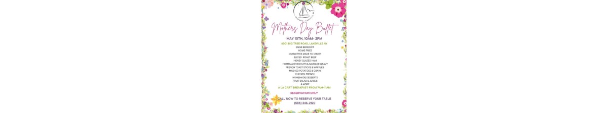 Leisure's will be providing an a la carte breakfast from 7 to 11 am and a full mother's day buffet from 10 am to 2 pm including eggs benedict, omelets, sliced roast beef, honey glazed ham, biscuits and gravy, French toast, mashed potatoes, homemade desserts and more.