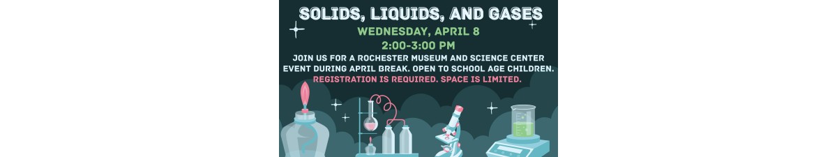 Join the Wadsworth Library gang for a Rochester Museum and Science Center event during April Break! Open to school age children. Registration is required.